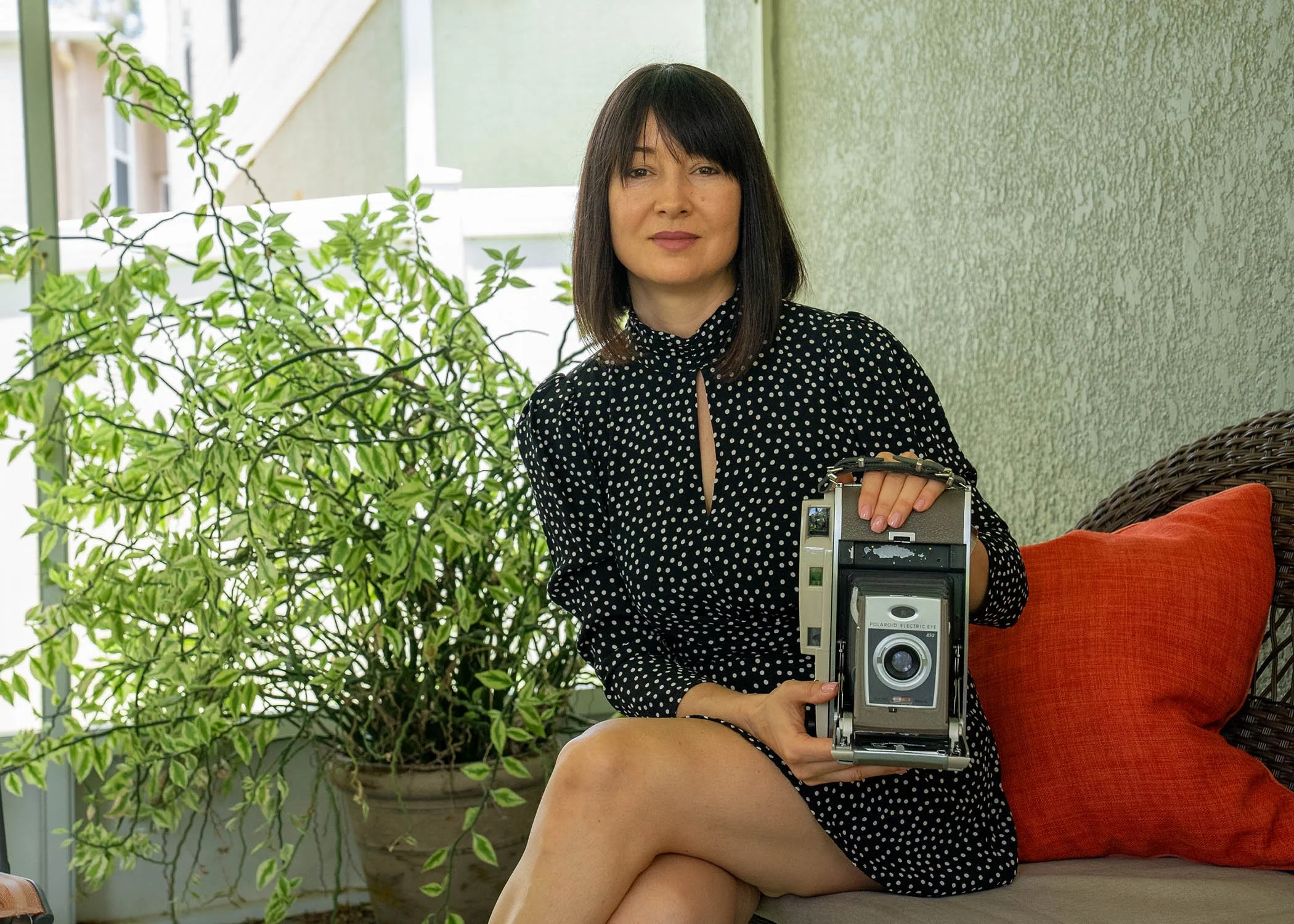 Yuliya Panchenko Holding a Polaroid 850